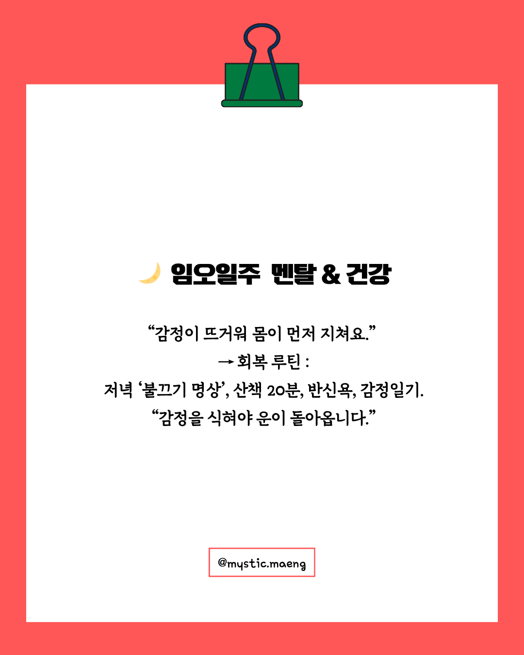 5️⃣ 멘탈 & 건강 – “마음이 늘 뜨겁고, 몸은 자주 피곤해요”