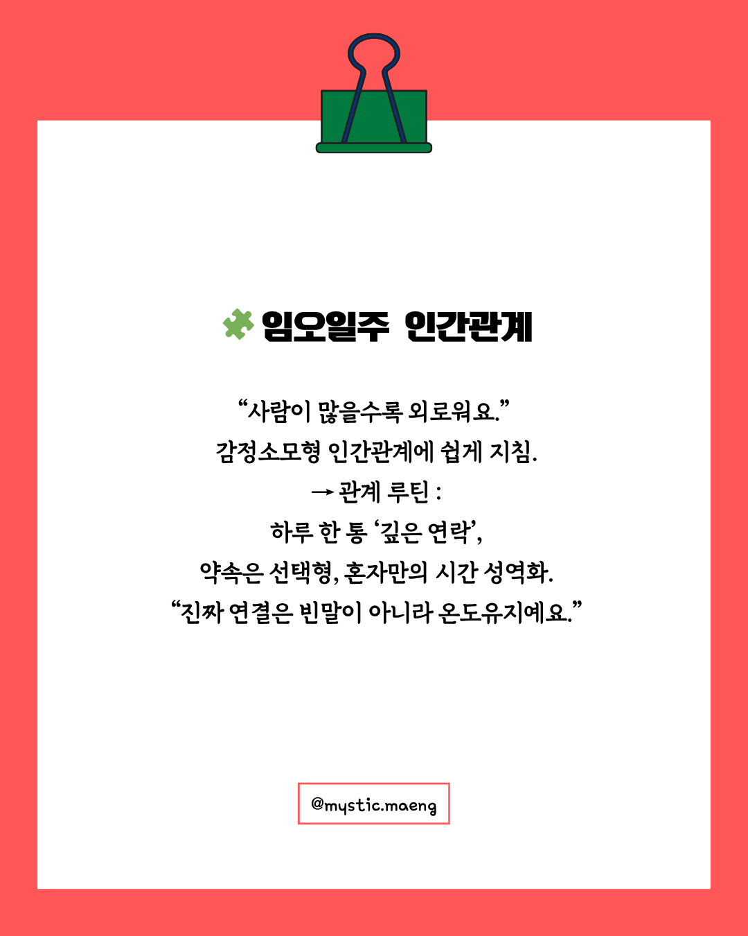 3️⃣ 인간관계 – “사람들이 많을수록 외로워져요”