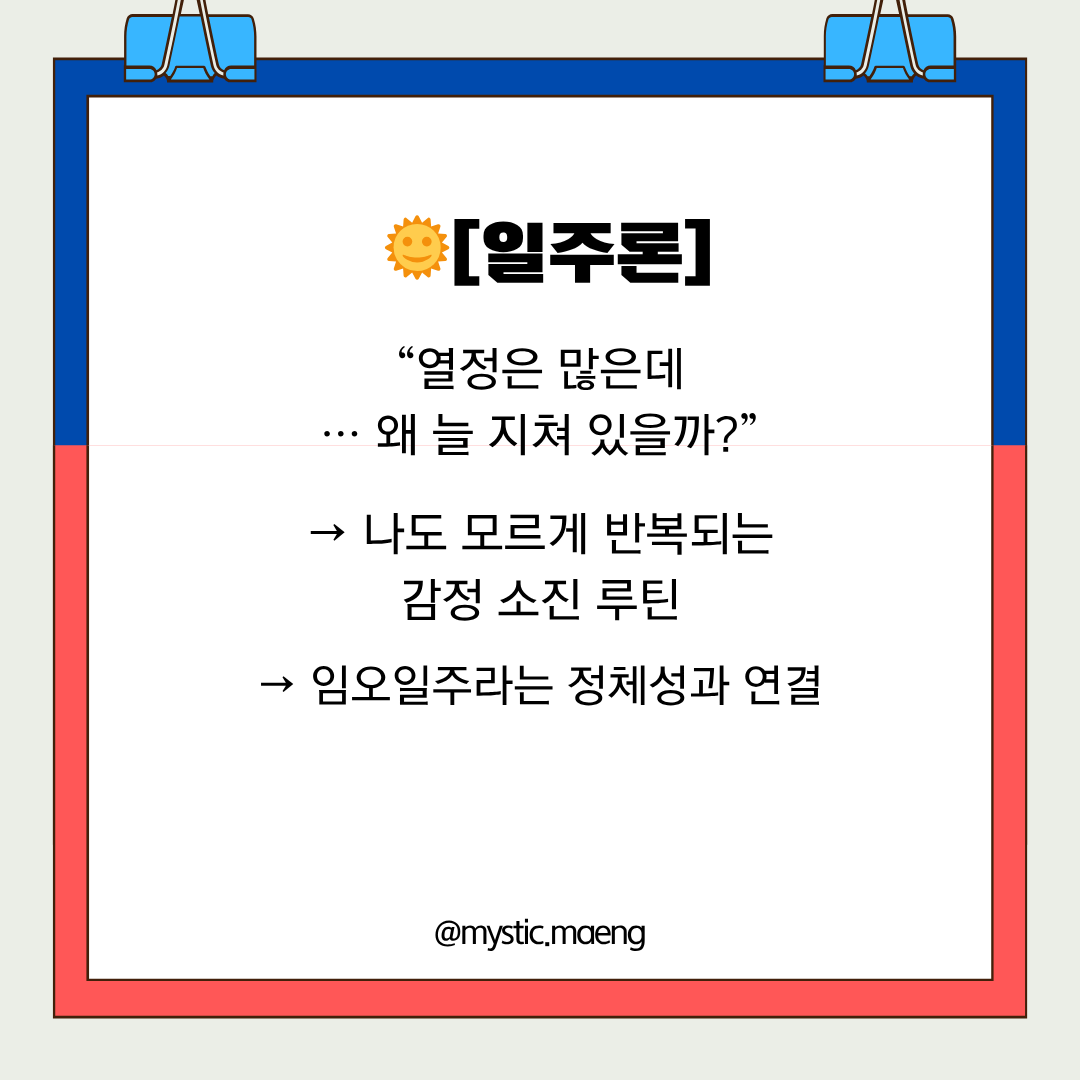 임오일주는요, ‘지금 이 순간’에 가장 진심인 사람들이에요. 그 마음이 너무 뜨겁다 보니, 때론 스스로를 태우기도 하죠.