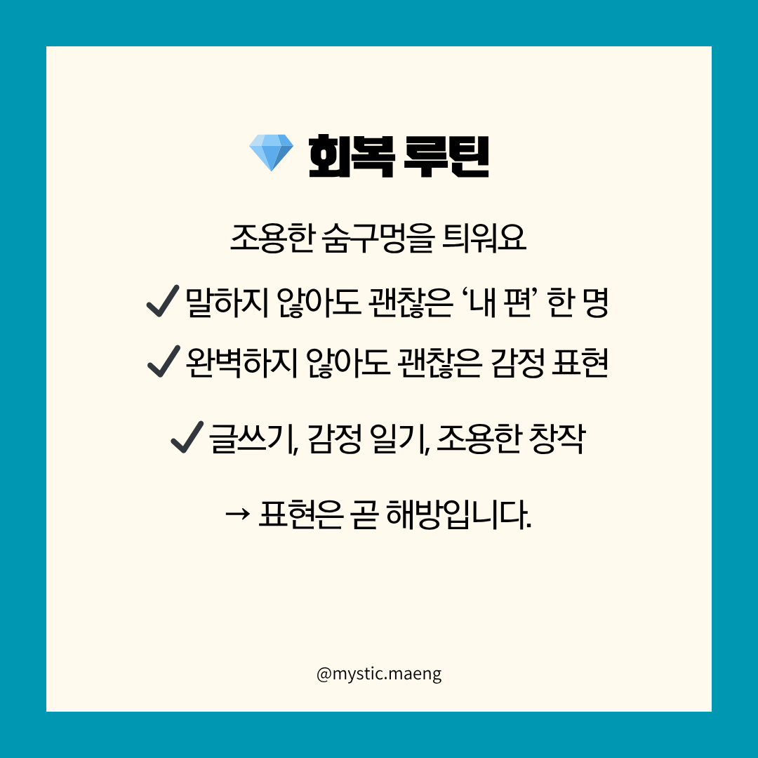 → 감정은 꺼내야 흘러가고, 흘러야 가벼워져요.