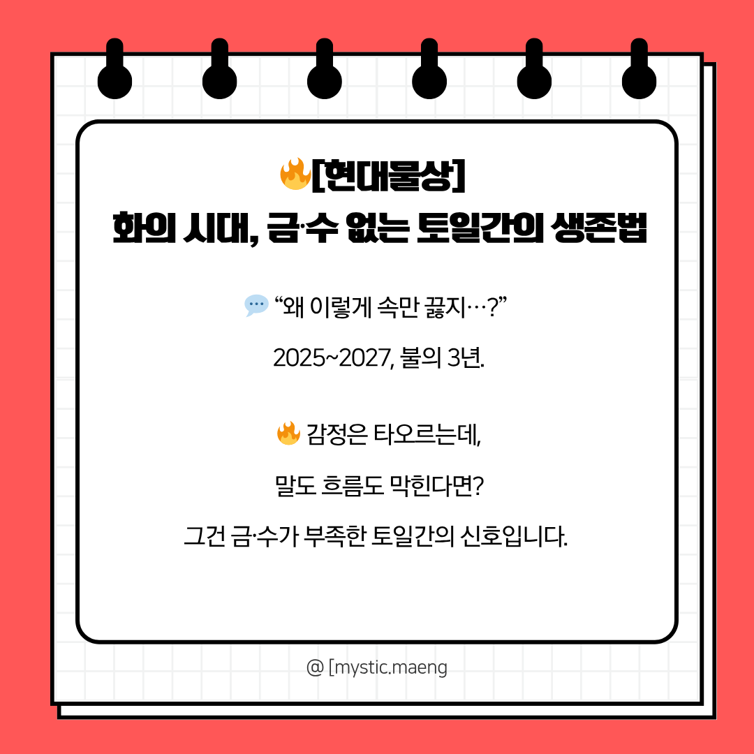 🔥 지금은 불의 시대입니다. 감정은 끓고, 생각은 많고, 말은 쌓이는데…