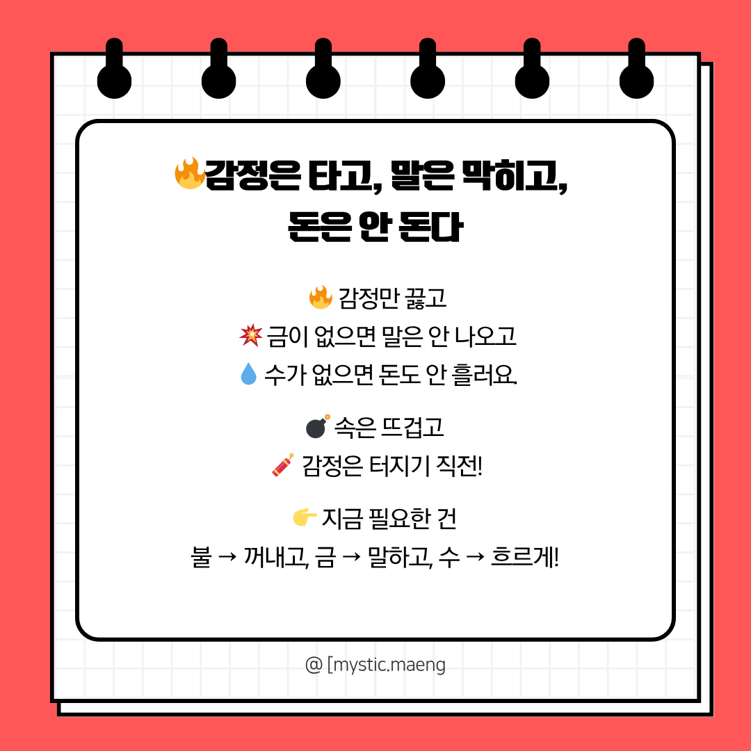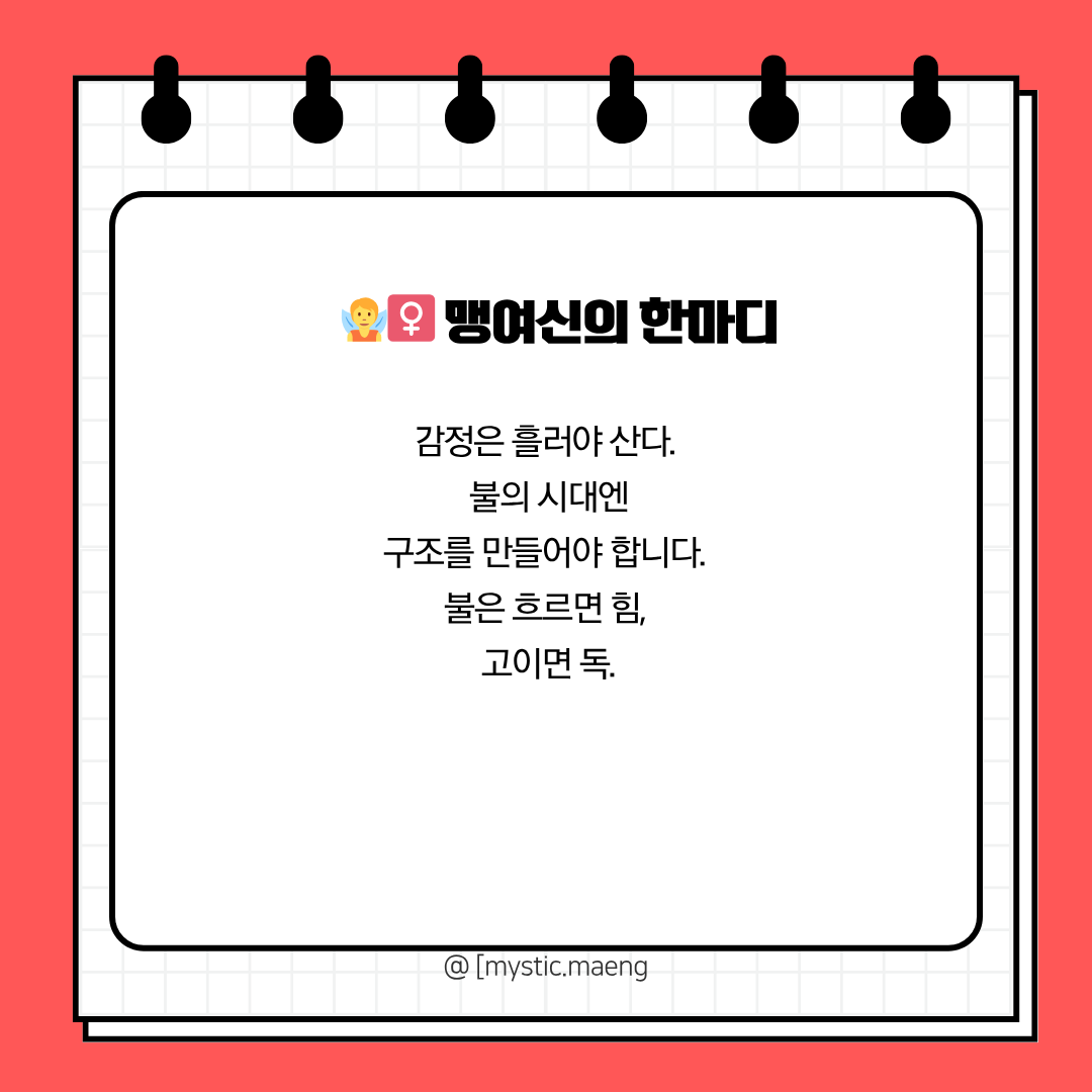🔥 불은 흘러야 에너지고, 고이면 독이 됩니다. 당신의 불이 흐르고, 연결되고,
