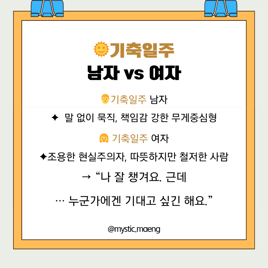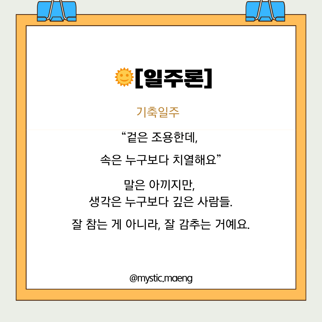 💬 “잘 참는 게 아니라… 말 안 하는 거예요.” 기축일주는 겉으로는 묵묵하고 점잖아 보여요.
