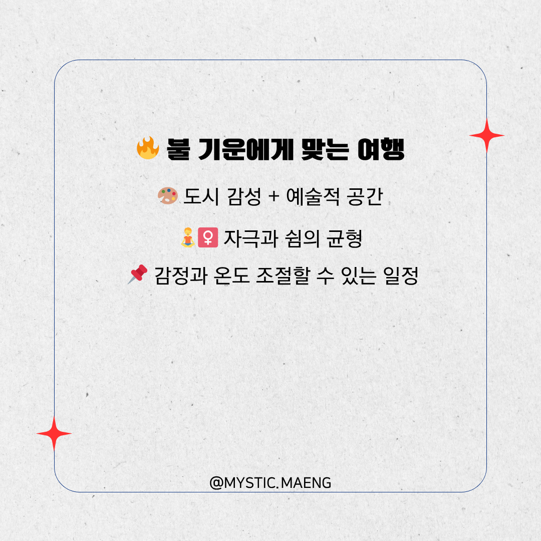 🧭 불(火) 기운에게 맞는 여행 스타일