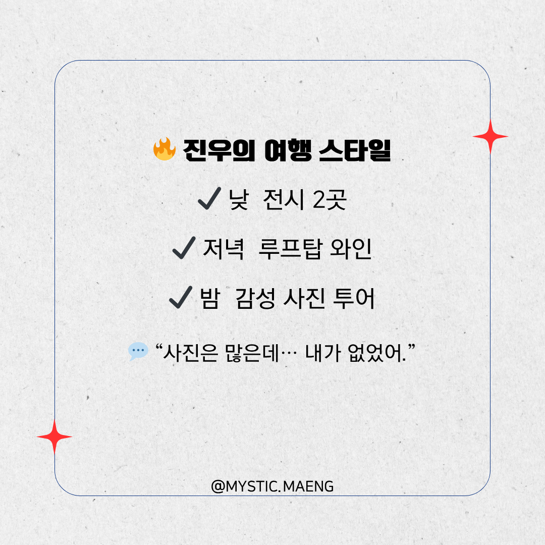 🎭 진우의 여행 스타일은 이랬어요