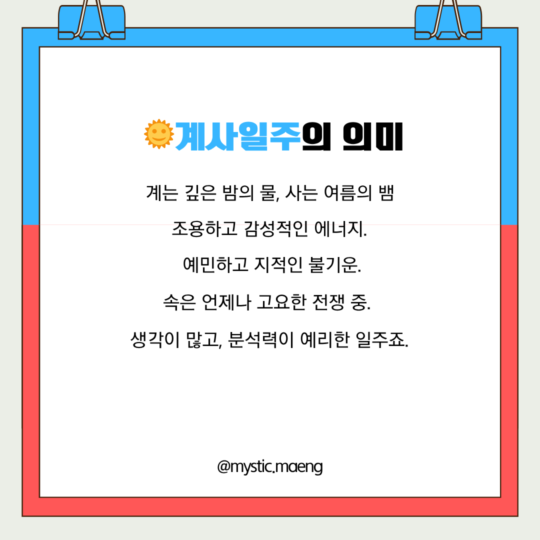 🌫 계사일주는 차가운 물 위에 뜨거운 불이 피어오르는 존재.