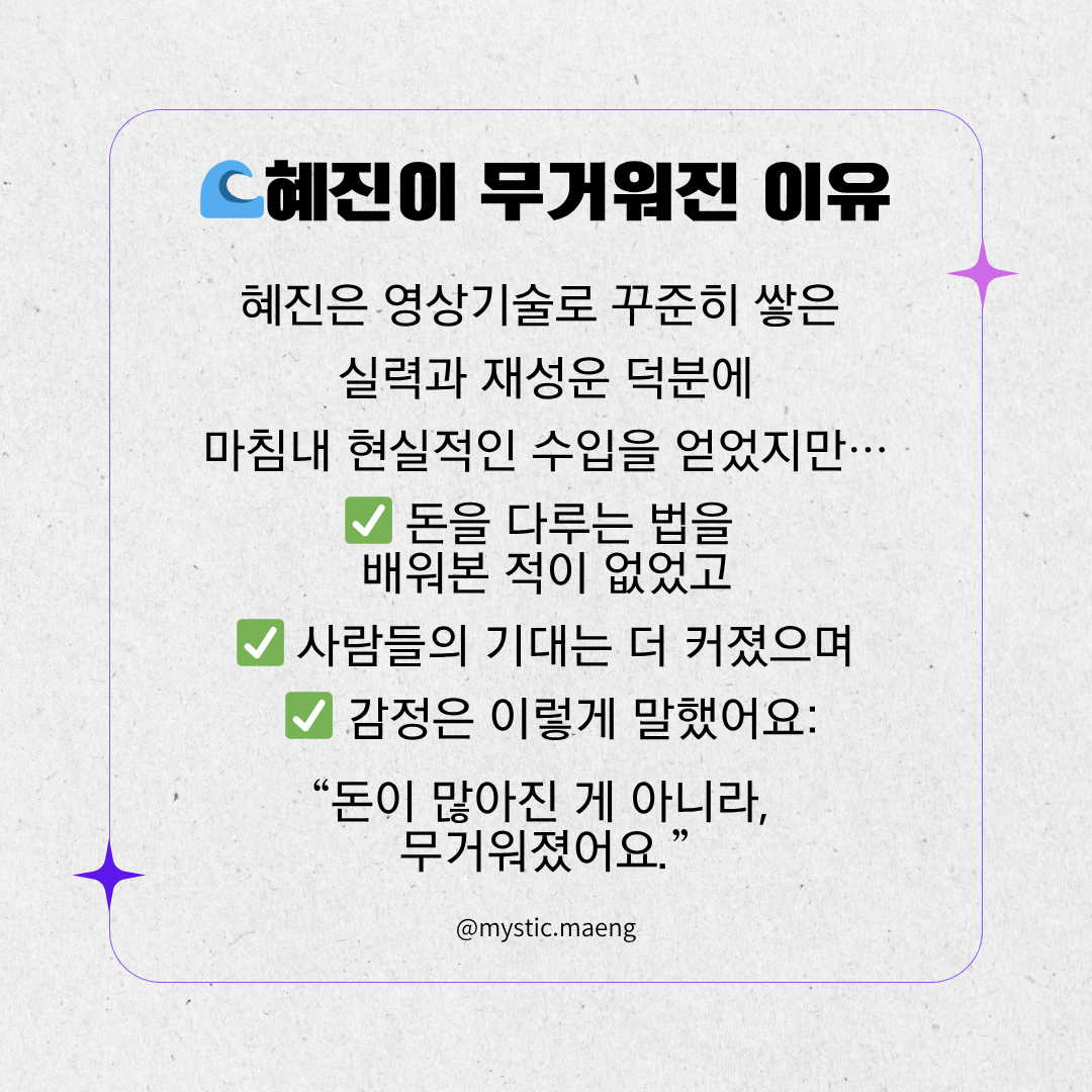 “저… 요즘 수입이 진짜 많이 늘었어요. 근데… 이상하게 더 불안해요.”